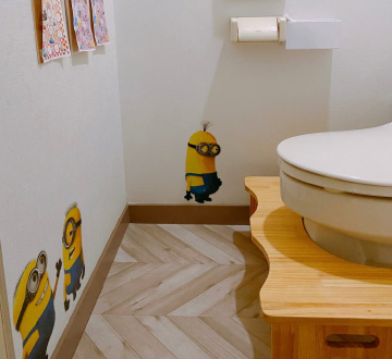 おトイレに行きたくなる仕掛けもありますのでおトイレが苦手なお子様でもご安心ください。また、おまるや補助便座もご用意しています。